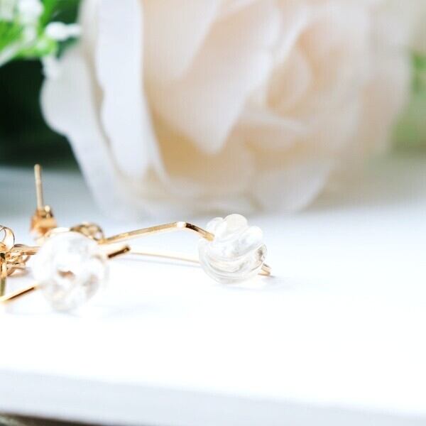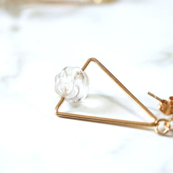S字カット水晶とゴールドトライアングルの揺れるピアス