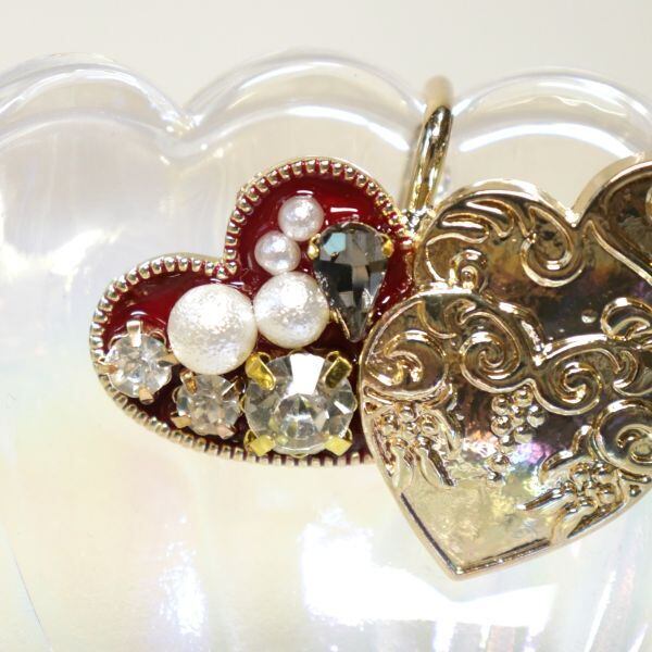 キラキラビジューとフェイクコットンパールのハートポニーフック 大きめビジュ 一個売り 金