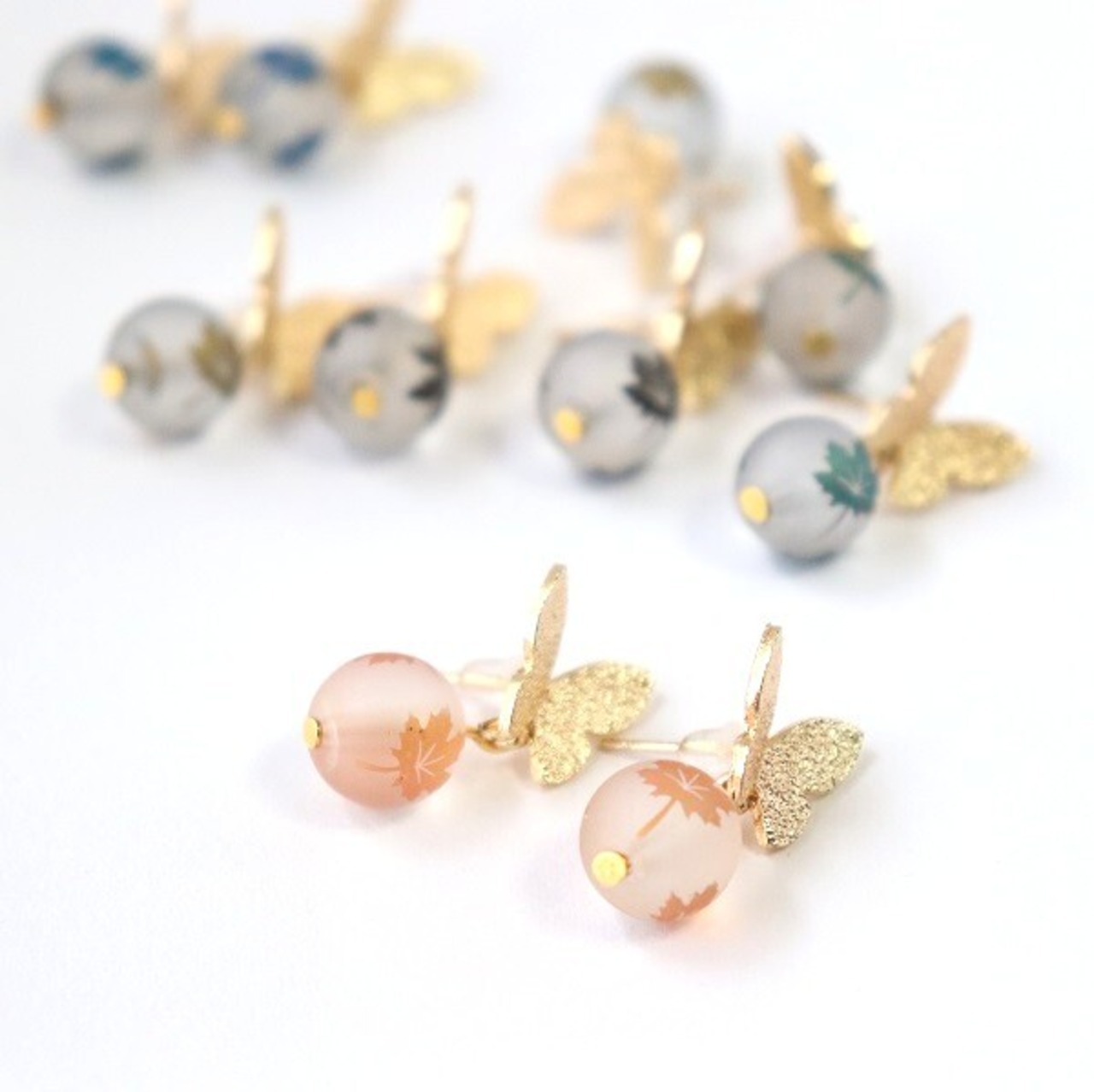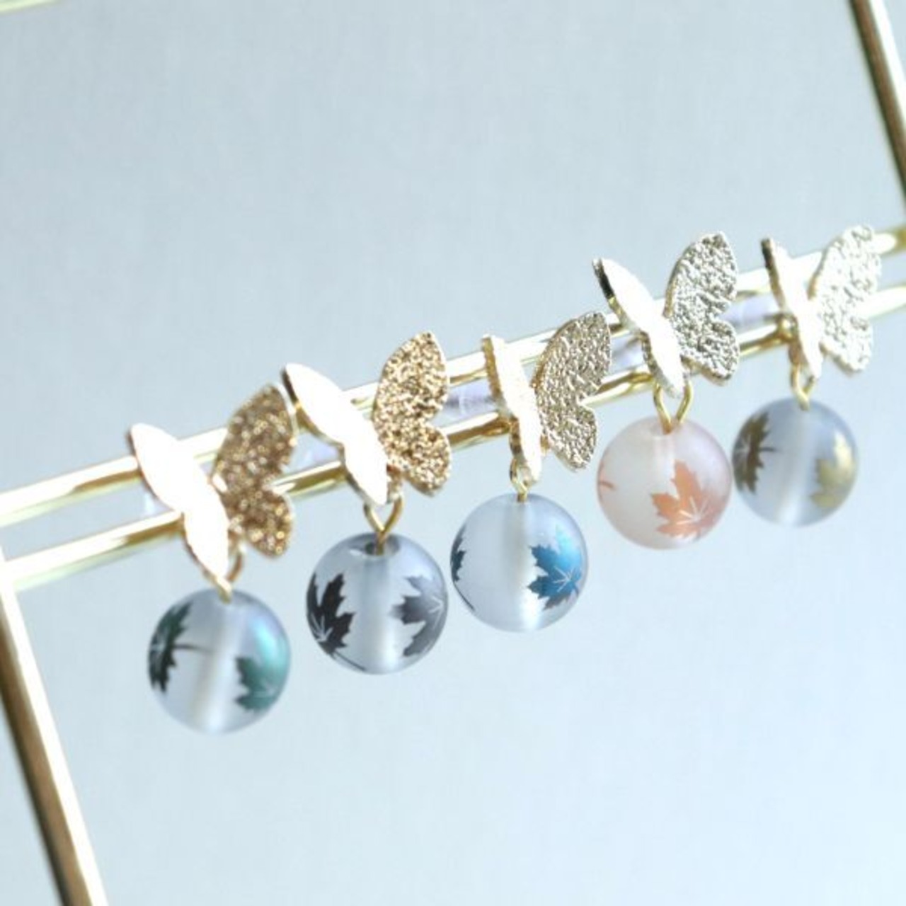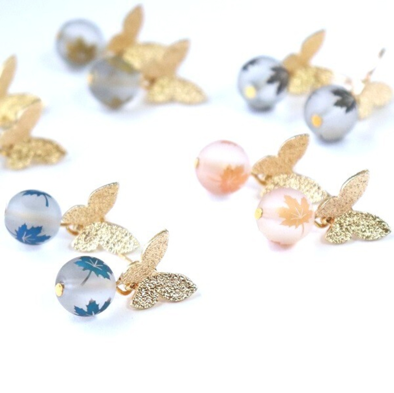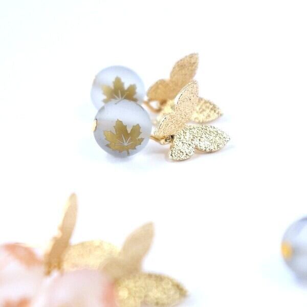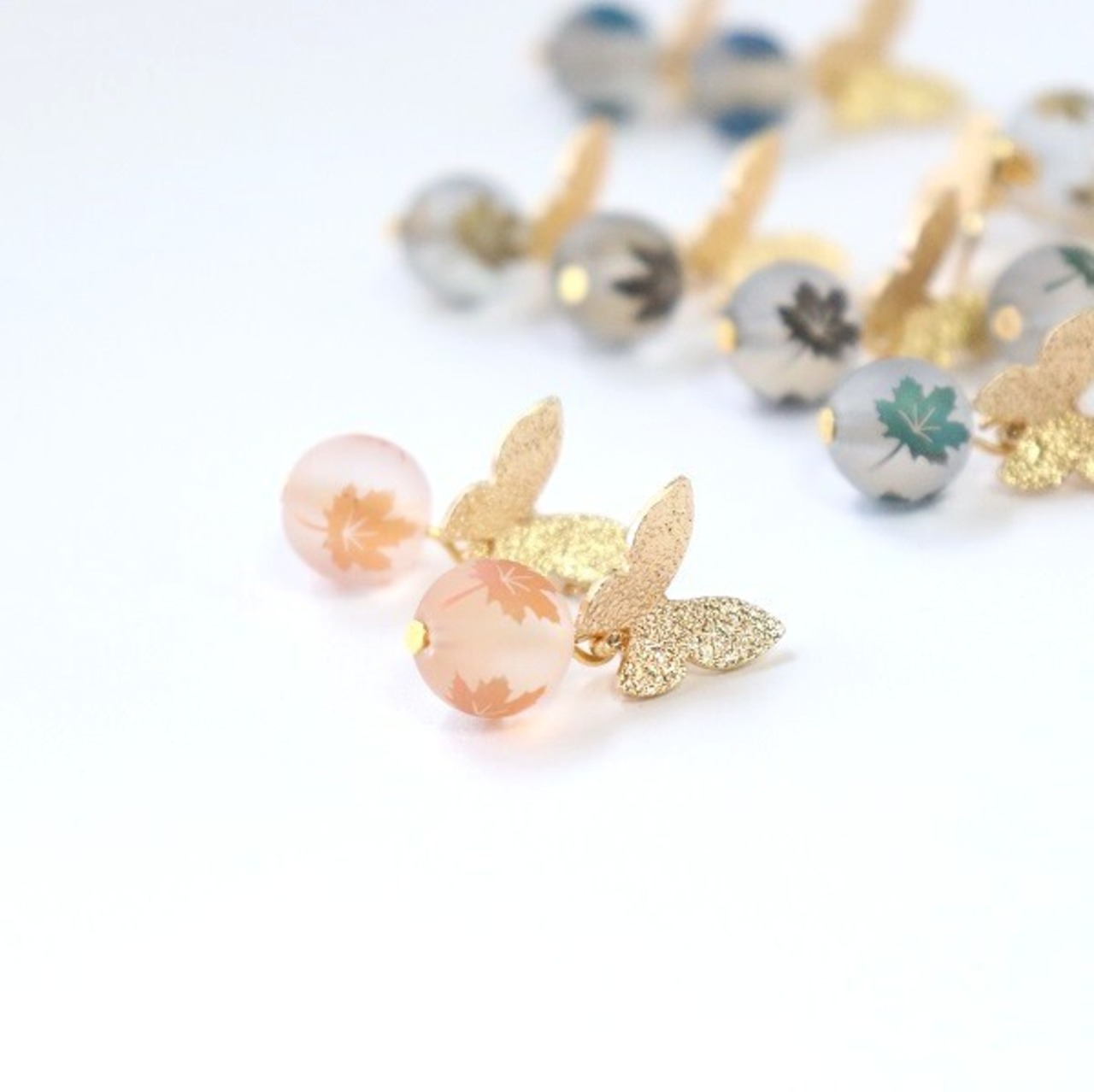 カエデの葉がプリントされたビーズが揺れる