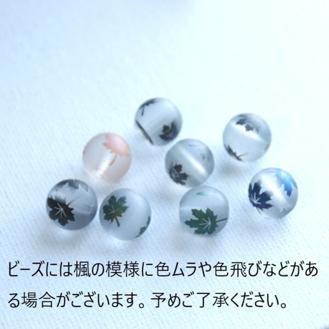 ビーズの楓模様には多少の色ムラや色飛びなどがある場合がございます。