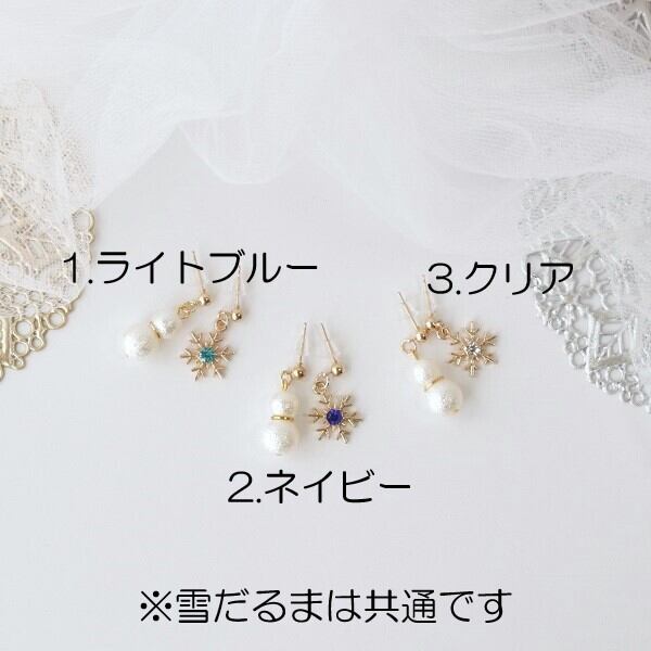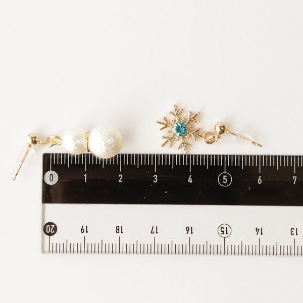 ころんとした雪だるまがとてもかわいいアシンメトリーピアス・イヤリングです☆