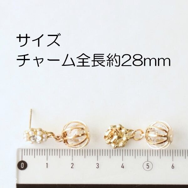 鳥かごドームの中にはガラスがキラキラと揺れるかわいいピアス。