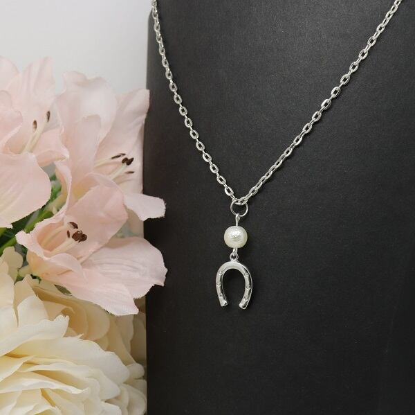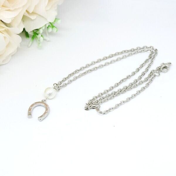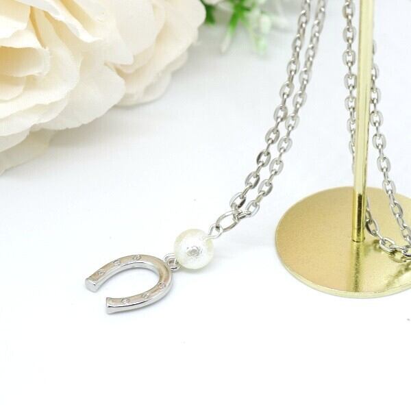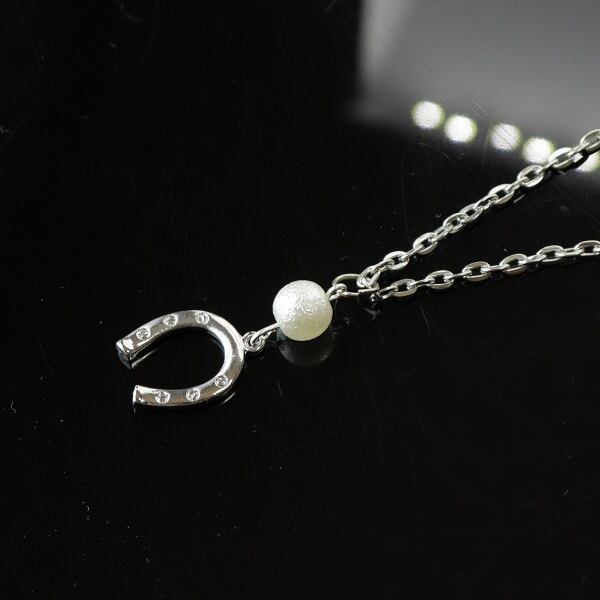 ネックレス 馬蹄 コットンパール シンプルデザイン シルバー うま 蹄鉄 ビーズ ne-002
