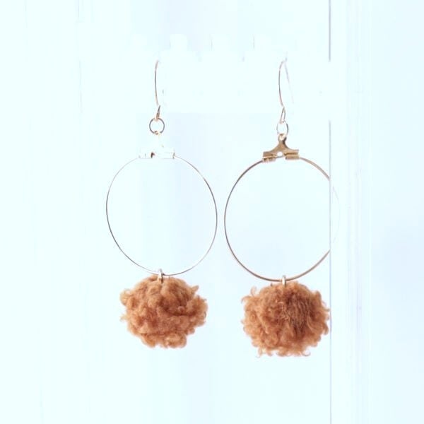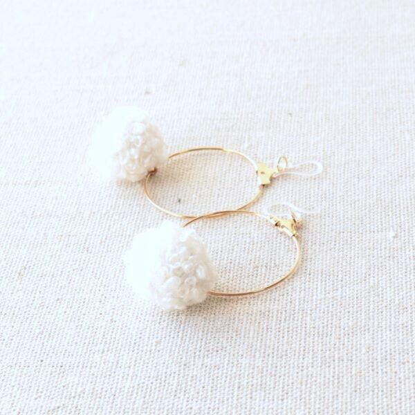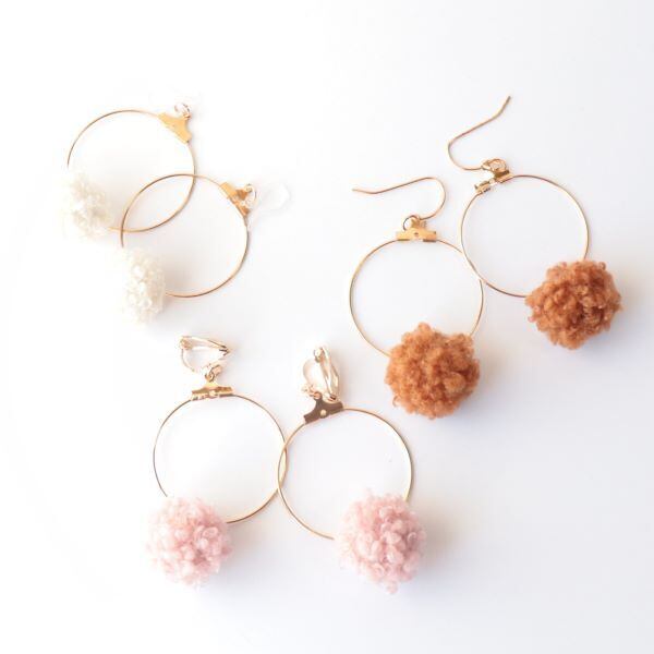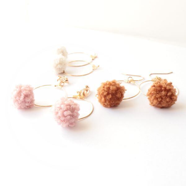 もこもこプードルファーとゴールドフープの可愛いピアス イヤリング 金具変更可 ピンク ブラウン オフホワイト
