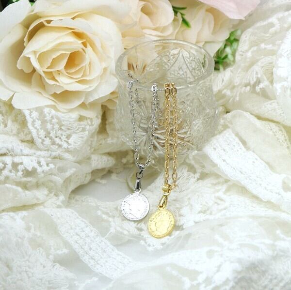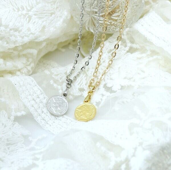 コインネックレス ゴールド シルバー ミニ コイン 金 銀 50cm チェーン ne-003