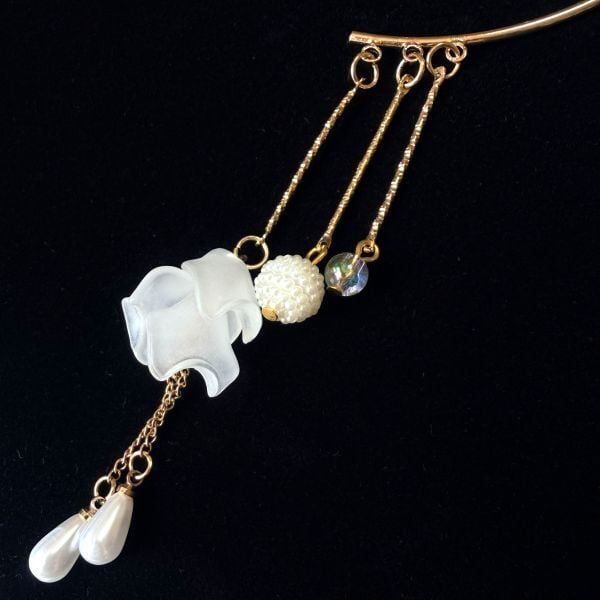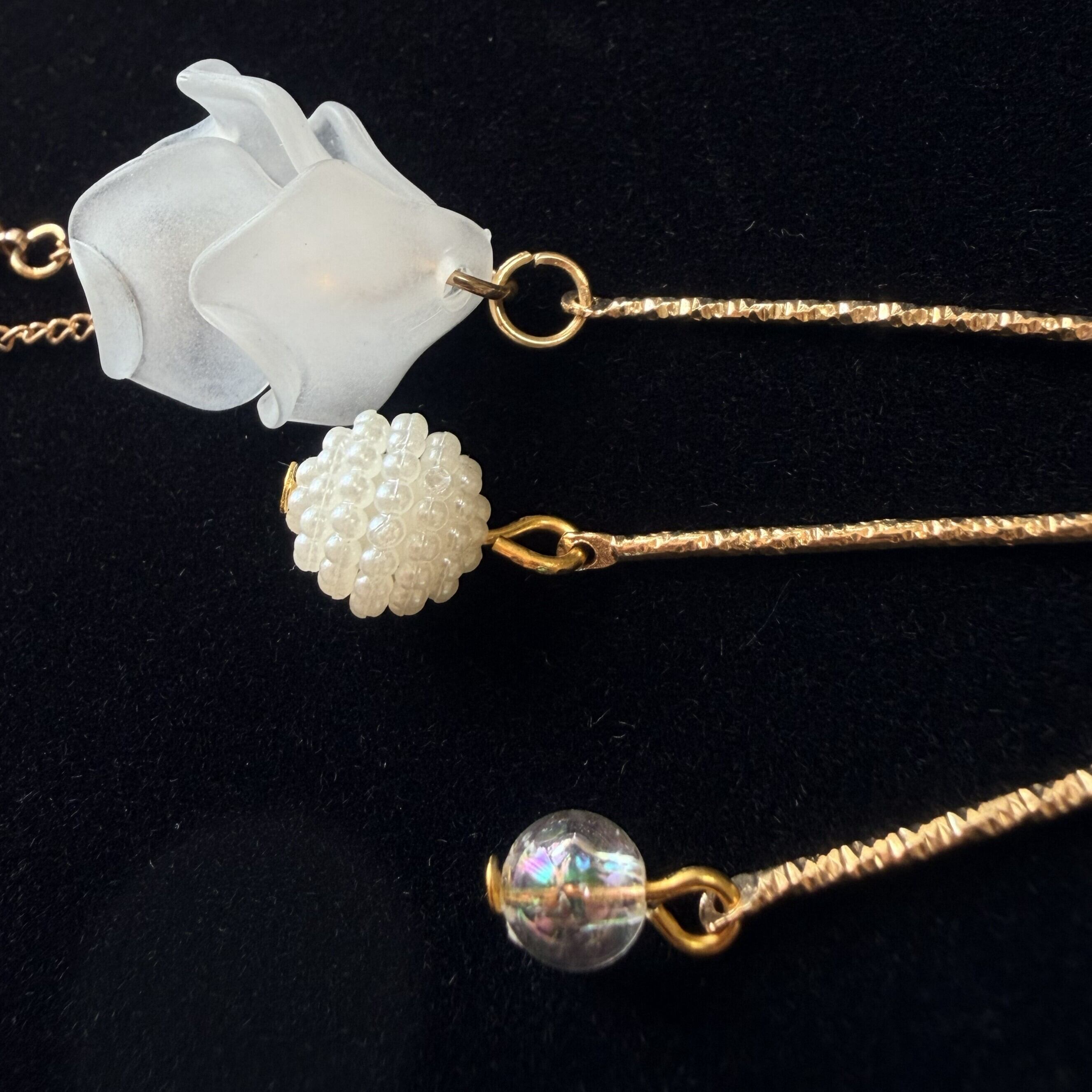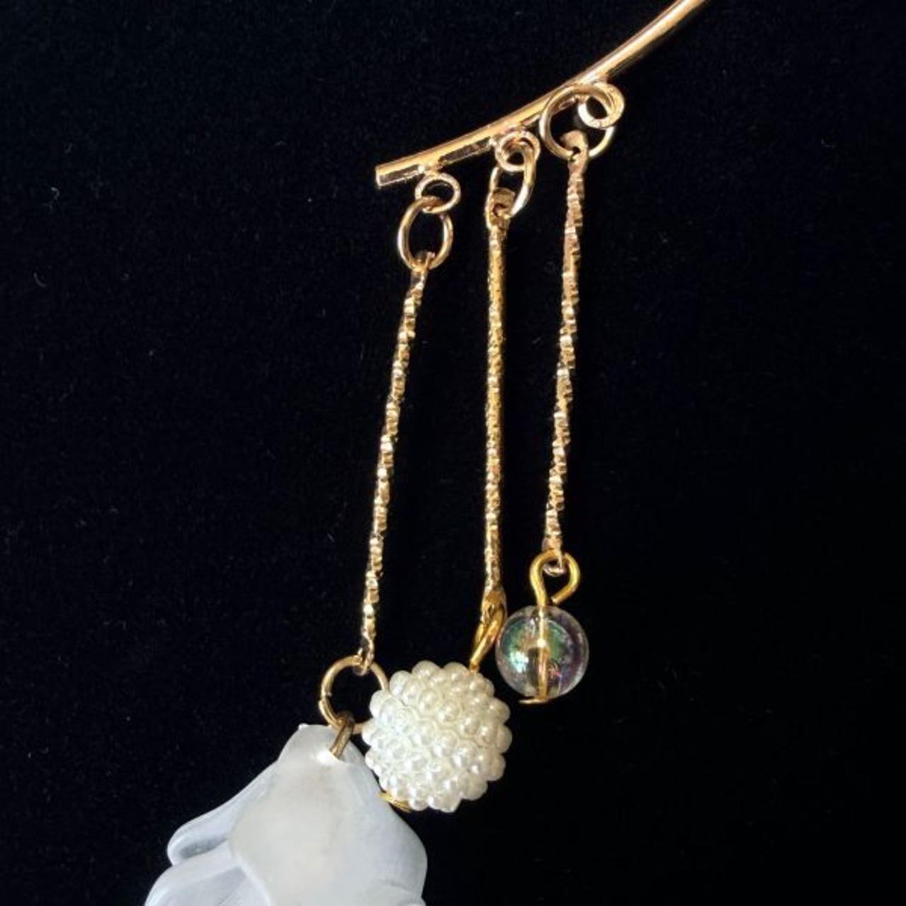 鉄製カットチェーン・アクリル製パール調シズク×銅製高品質キャップ