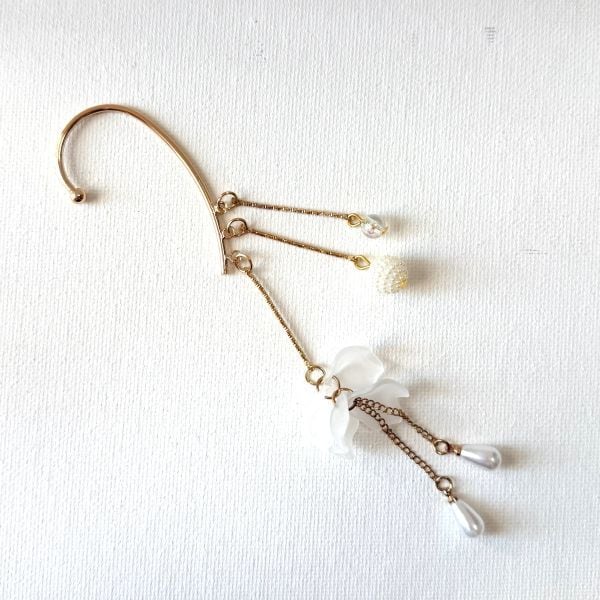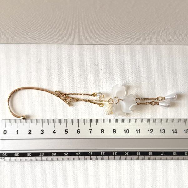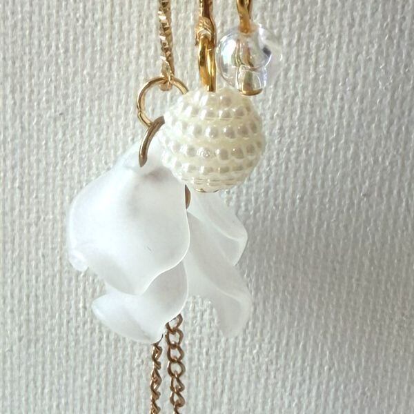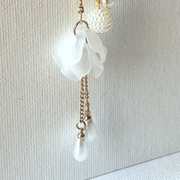すりガラスみたいな花びらとパールビーズ揺れる清楚系イヤーフック 片耳用