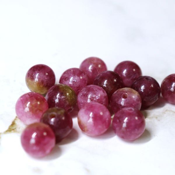 天然石のピンクトルマリン(8mm玉)使用。