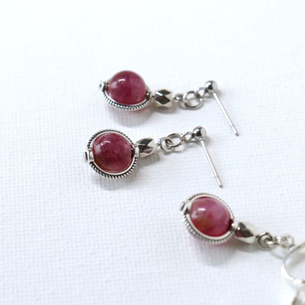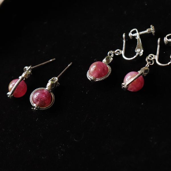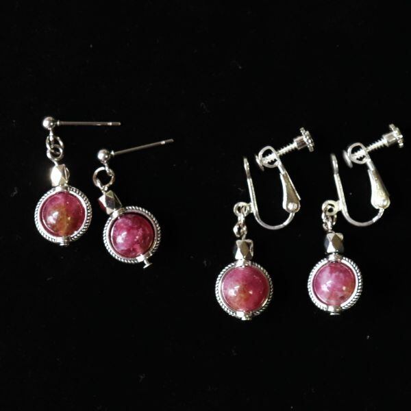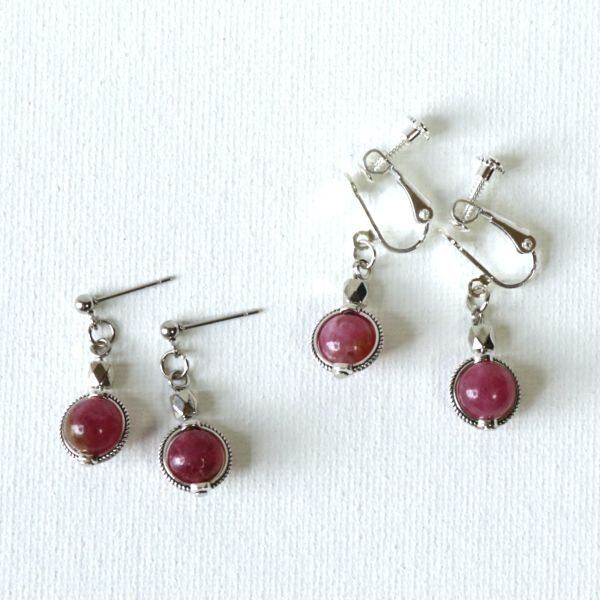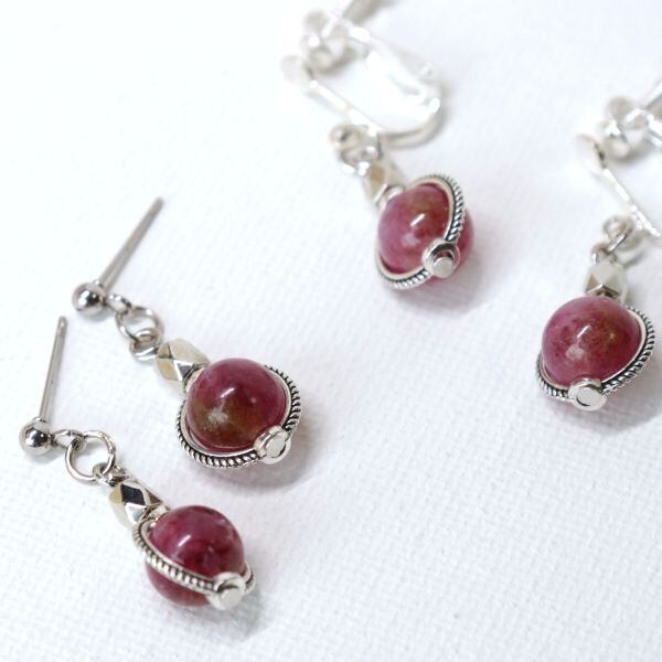 天然石 ピンクトルマリン使用 シルバー カットビーズ ピアス・イヤリング 天然石 パワーストーン