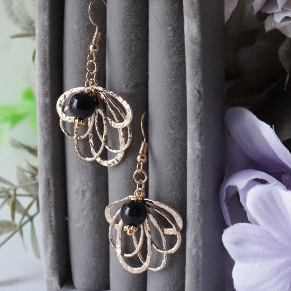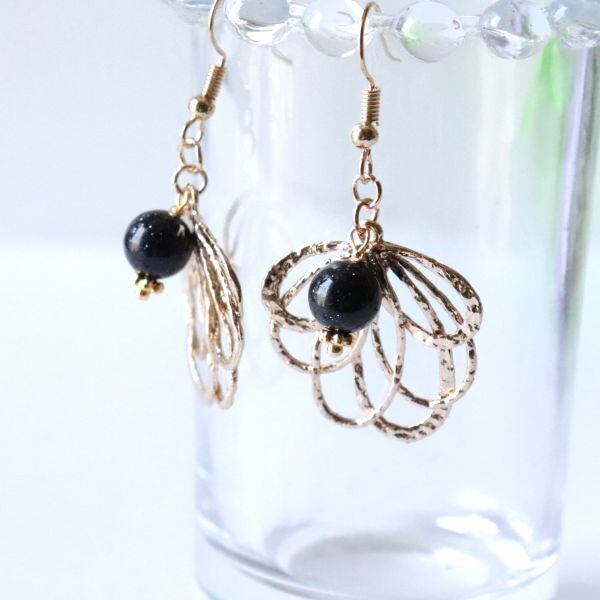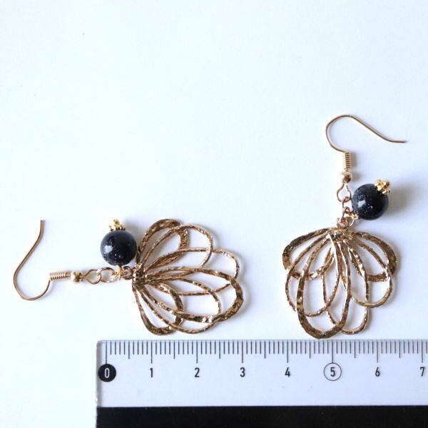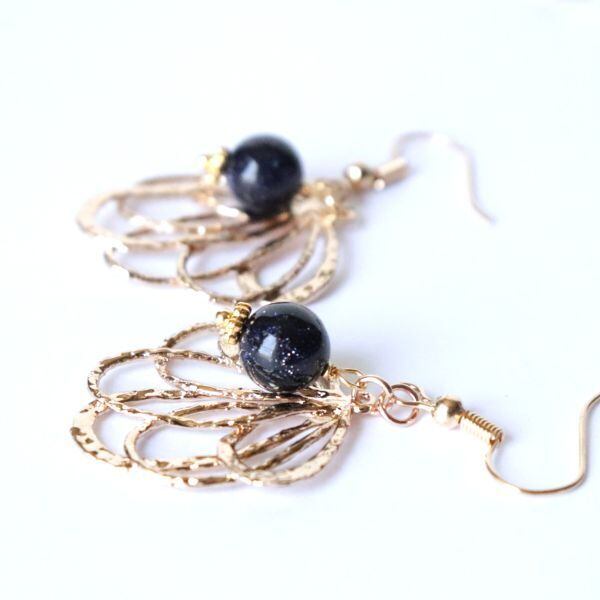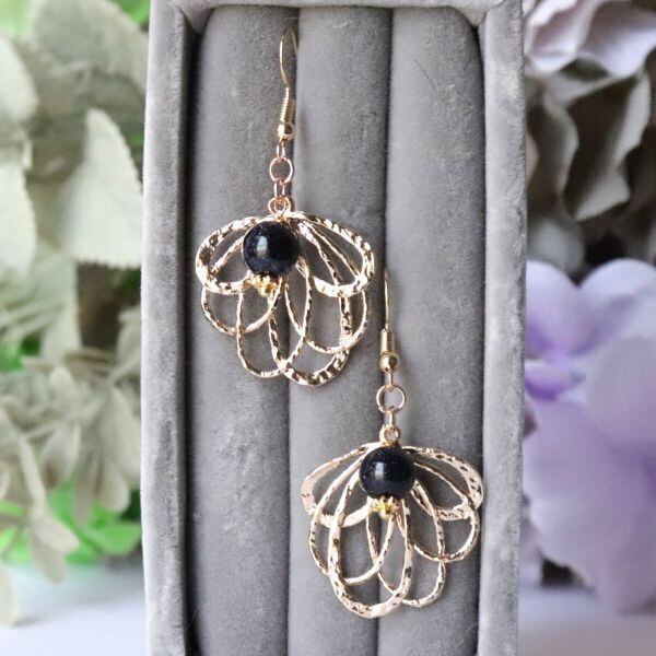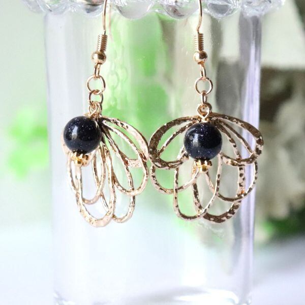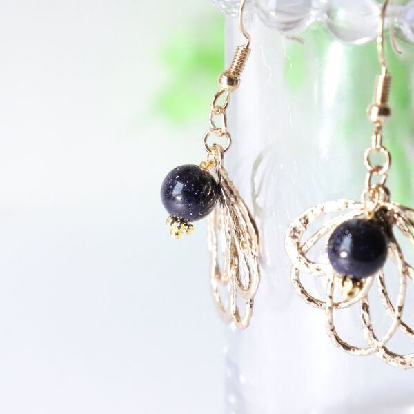 大ぶりの葉っぱにネイビーカラーのブルーサンドストーンを合わせた、大人のボタニカルアクセサリー。